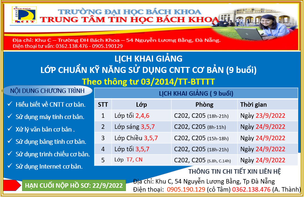 📣 THÔNG BÁO: Khai giảng lớp ôn tập 9 BUỔI ứng dụng CNTT Cơ bản đợt thi Tháng 10/2022